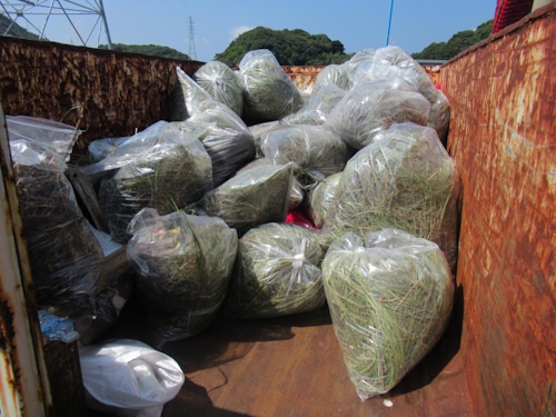 ・人工ゴミを市指定ゴミ袋に回収し、処理業者のコンテナに入れた。