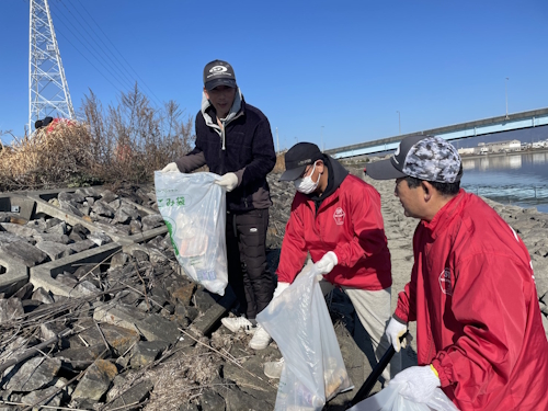 今回は川が減水日と言うこともあり安全を確認しながら普段なかなかできないテトラ周辺も清掃できました。