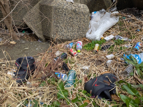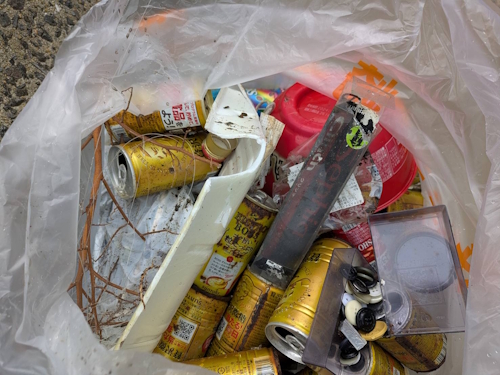 この日は途中で雨が降り出し、1時間程度ほどの活動となりましたが、家庭ゴミが多く、明らかに故意に捨てられたものばかりでした。缶がまとめて捨てられており、酷い状況でした。釣りゴミも見受けられ、我々スタッフも気が引き締まる思いです。