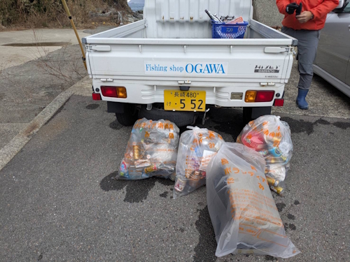 協力:長崎県釣り団体協議会 ごみ回収量4袋 長崎県支部長小川敏朗