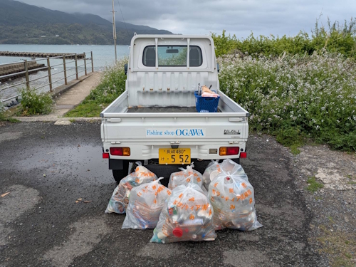 今年初めての清掃活動は、長崎市南部の為石漁協横へ行ってまいりました。釣りゴミは少なかったものの、この場所は海から流されたゴミや、波に打ち上げられたゴミが集中する為、いつもよりも量が多かったです。海ゴミが与える影響について考えさせられた一日となりました。