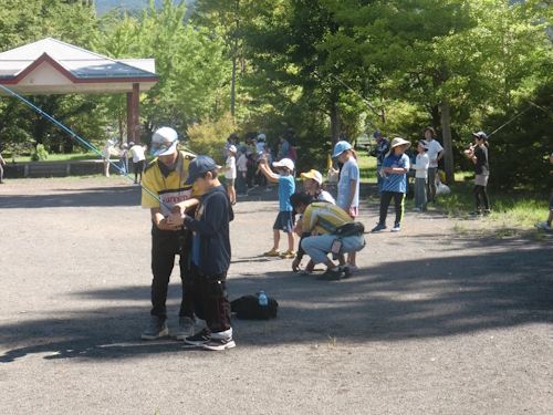 参加されました子どもさんや保護者の皆様の多くは、魚釣り未経験の方が大半で、初めて体験する釣り餌となる川虫採取やニジマス釣り体験に笑顔溢れる一日となりました。最初は虫が苦手な子も、途中から怖がらずに川虫を捕まえたりする様は、時に特別な環境は子供を成長させるものだと感じました。