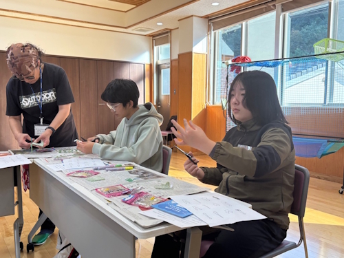バイオマス含有のルアーの説明をして思い思いに色塗りをして