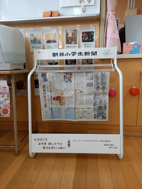 | 朝日小学生新聞のスタンドを小学校に寄贈した |