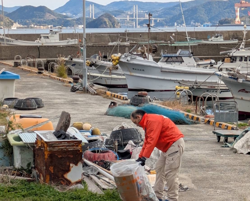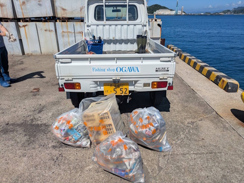 ゴミは巻き網など、漂流物ばかりでした。古里での清掃は久しぶりでしたので、ゴミが多くないか心配しておりましたが、想像よりは量も少なく、綺麗な状態でした。