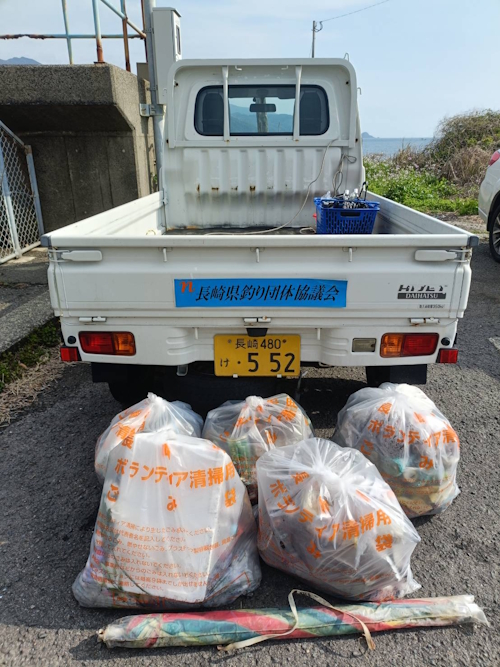 協力:長崎県釣り団体協議会 ごみ回収量4袋 長崎県支部長小川敏朗