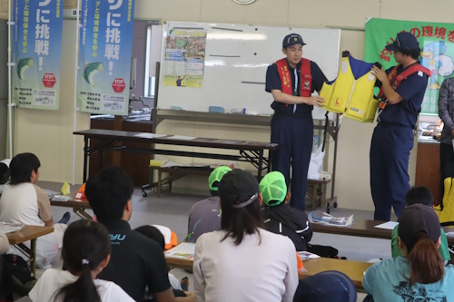 ようにと駆けつけてくれ、長崎海上保安部の方々はライフジャケット講習を実